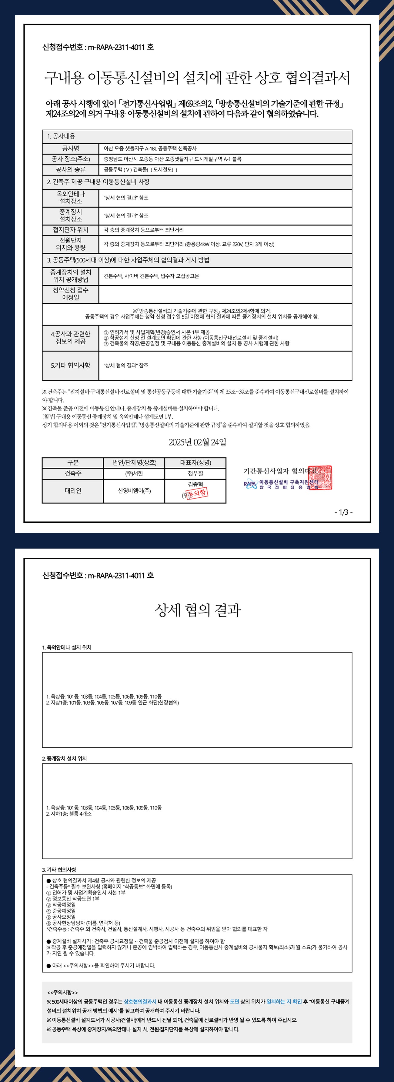이동통신 설비설치 협의 결과서